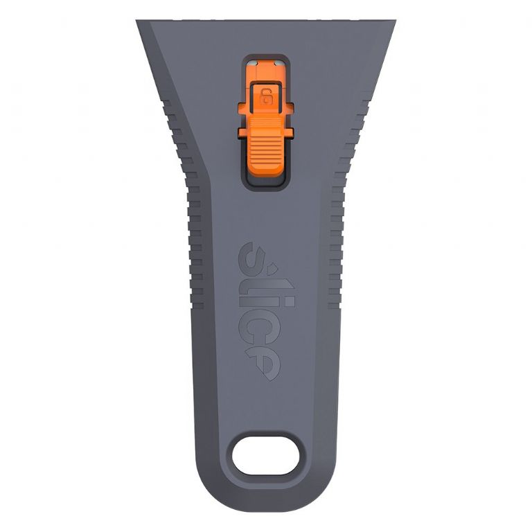 The Slice® 10591 Manual Utility Scraper introduces our finger-friendly®, rust-free safety blades to the world of industrial scrapers. Slice scrapers use our 10526 (rounded tip) and 10528 (pointed tip) utility blades in a sturdy handle that holds the blades steady for comfortable, safe scraping. Featuring soft-touch comfort grips and durable glass-filled nylon construction, this utility scraper is designed to last through hours of scraping while reducing hand strain. The handle has two preset blade positions to protect the blade and user when the tool is not in use.